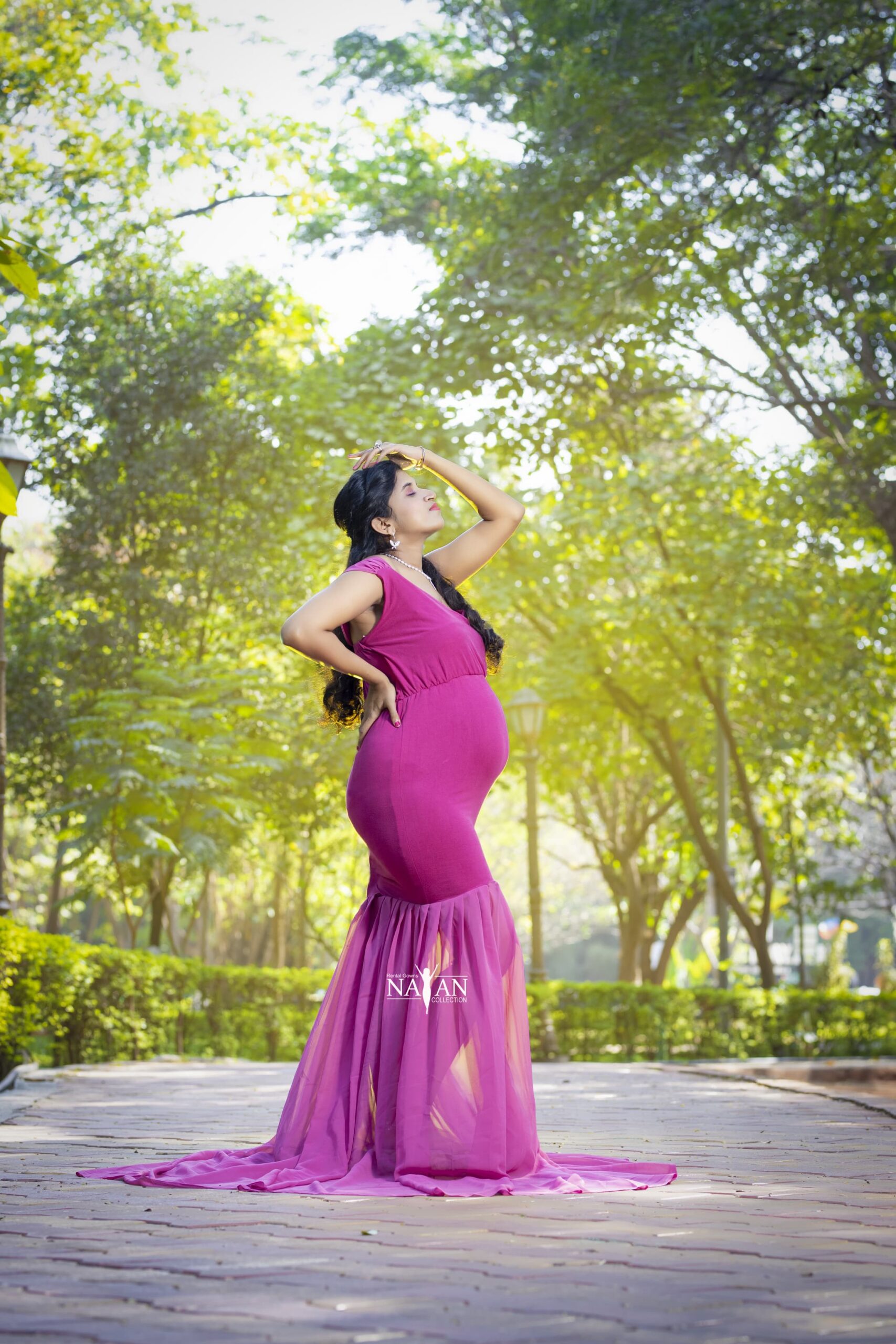 A pink long-tail maternity gown is an elegant and stylish piece of clothing designed for expecting mothers.