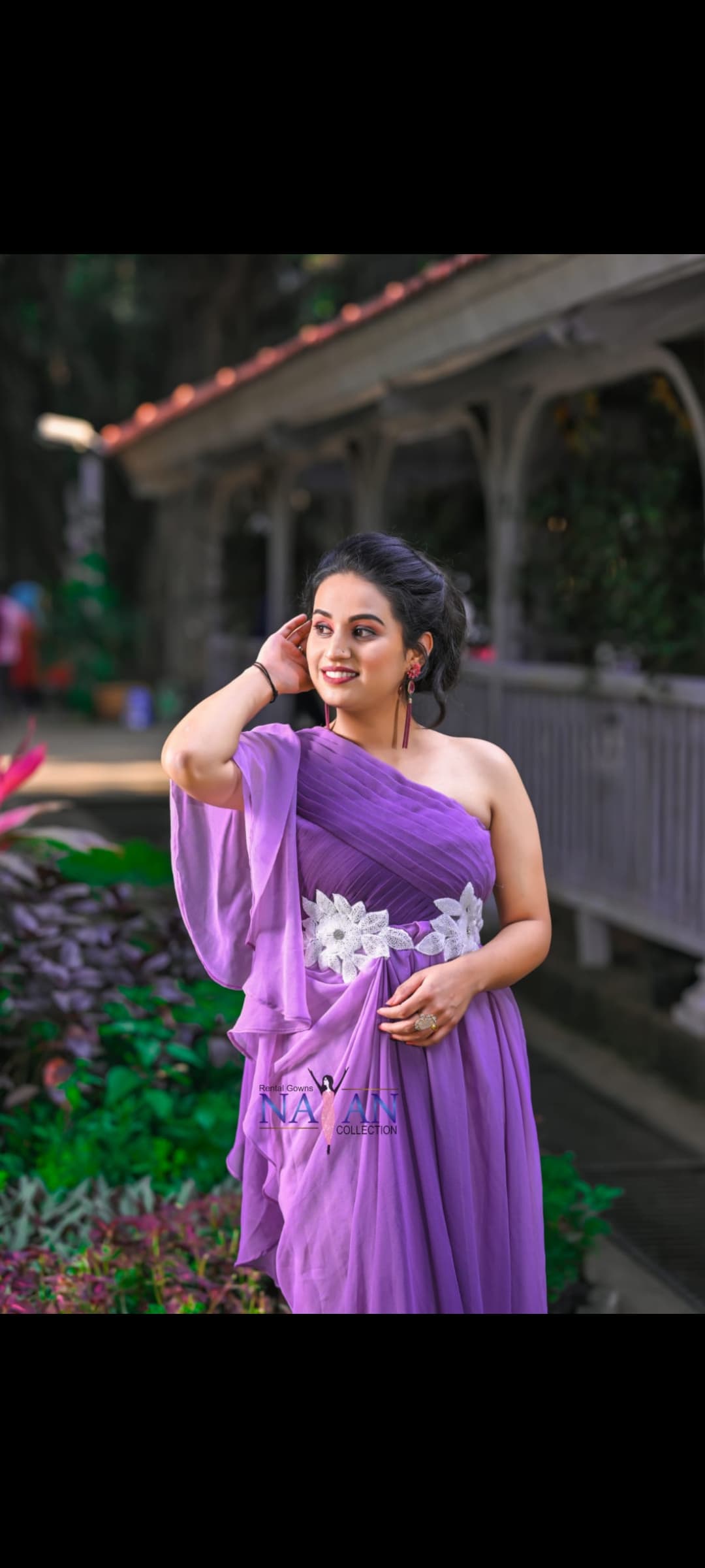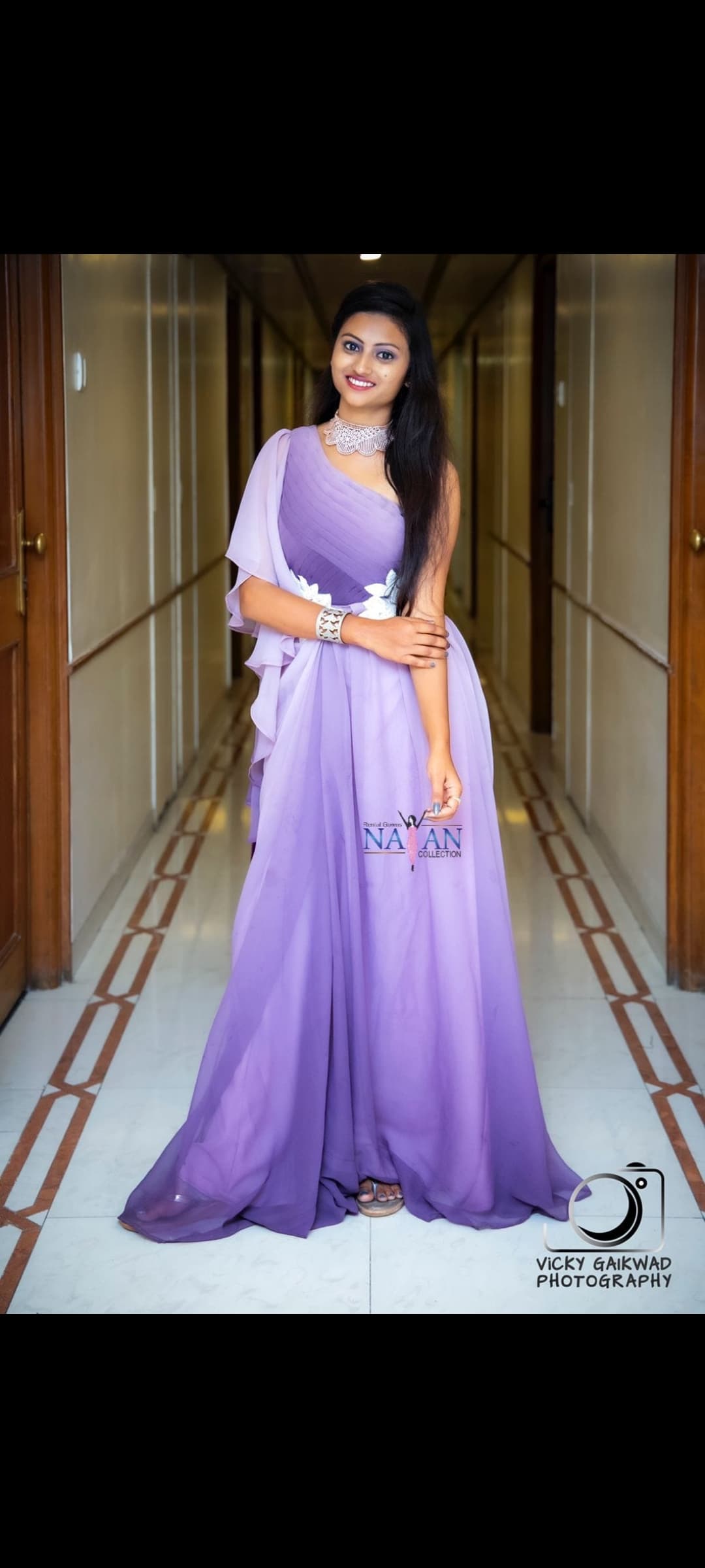 A purple double shade one-side dress is a striking, contemporary design that combines two rich shades of purple in a single dress, creating a dramatic and visually captivating look.