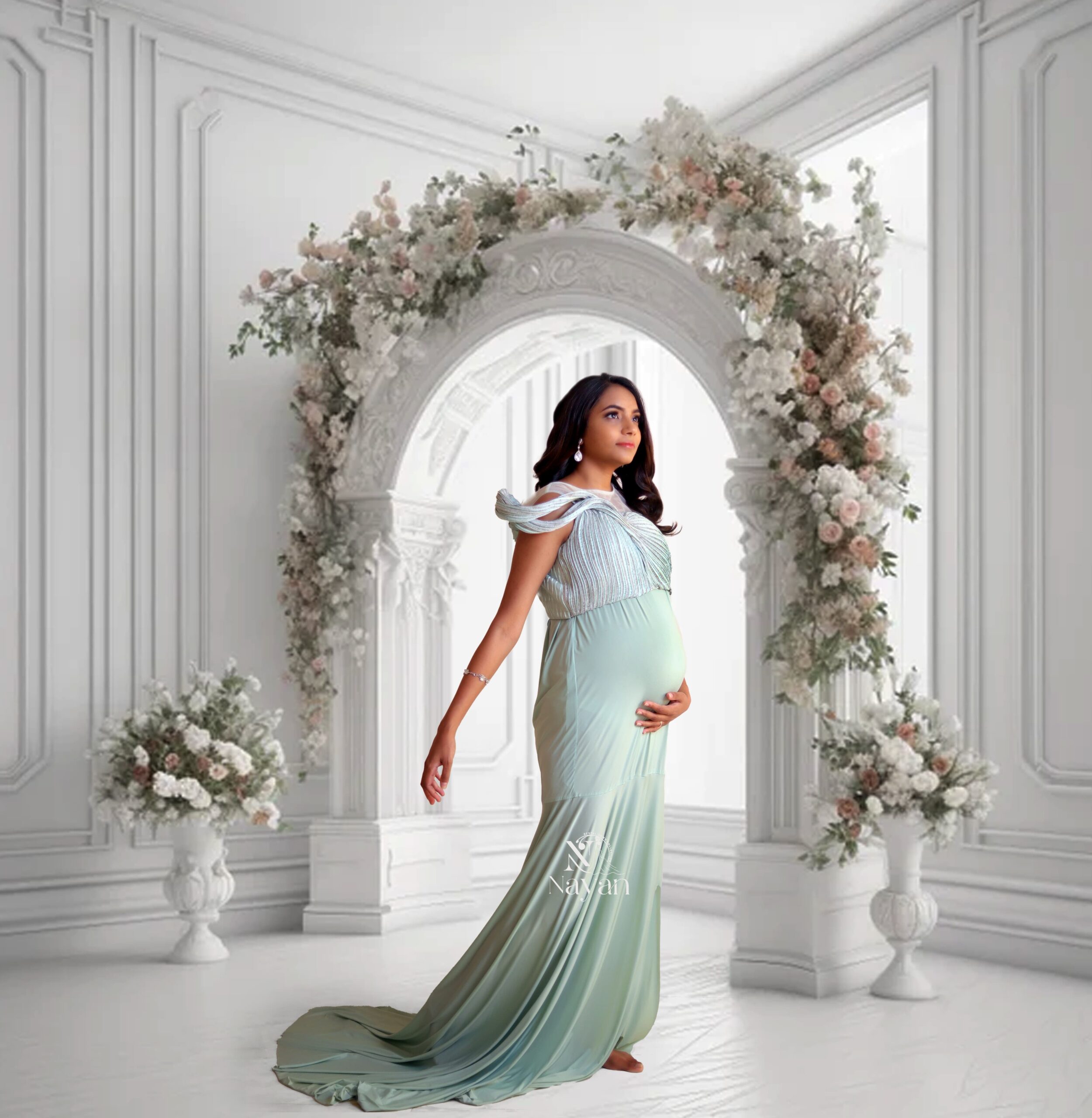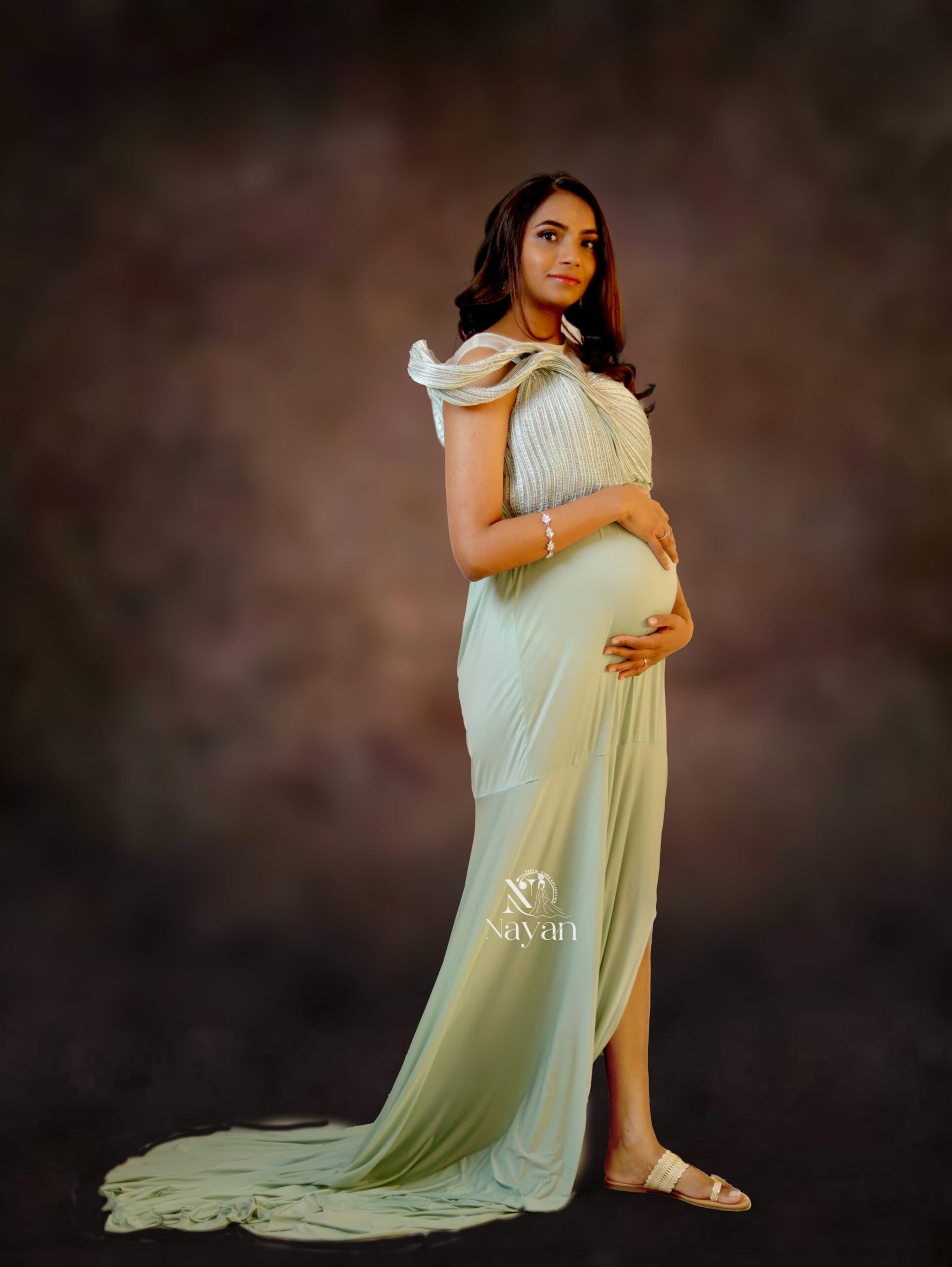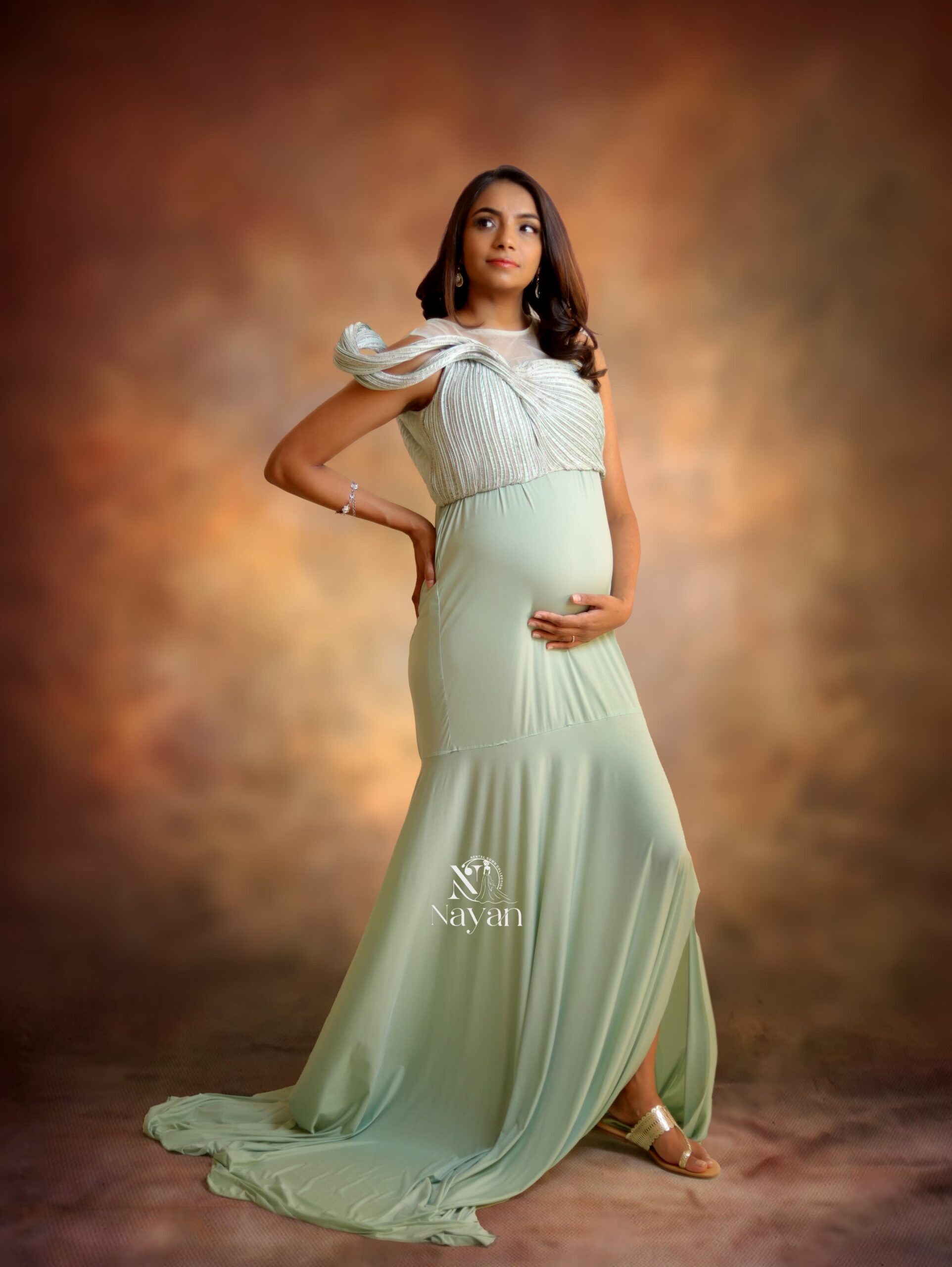 A pista maternity gown is a beautiful and elegant choice for expectant mothers, often featuring a soft and soothing green shade inspired by the color of pistachio nuts.